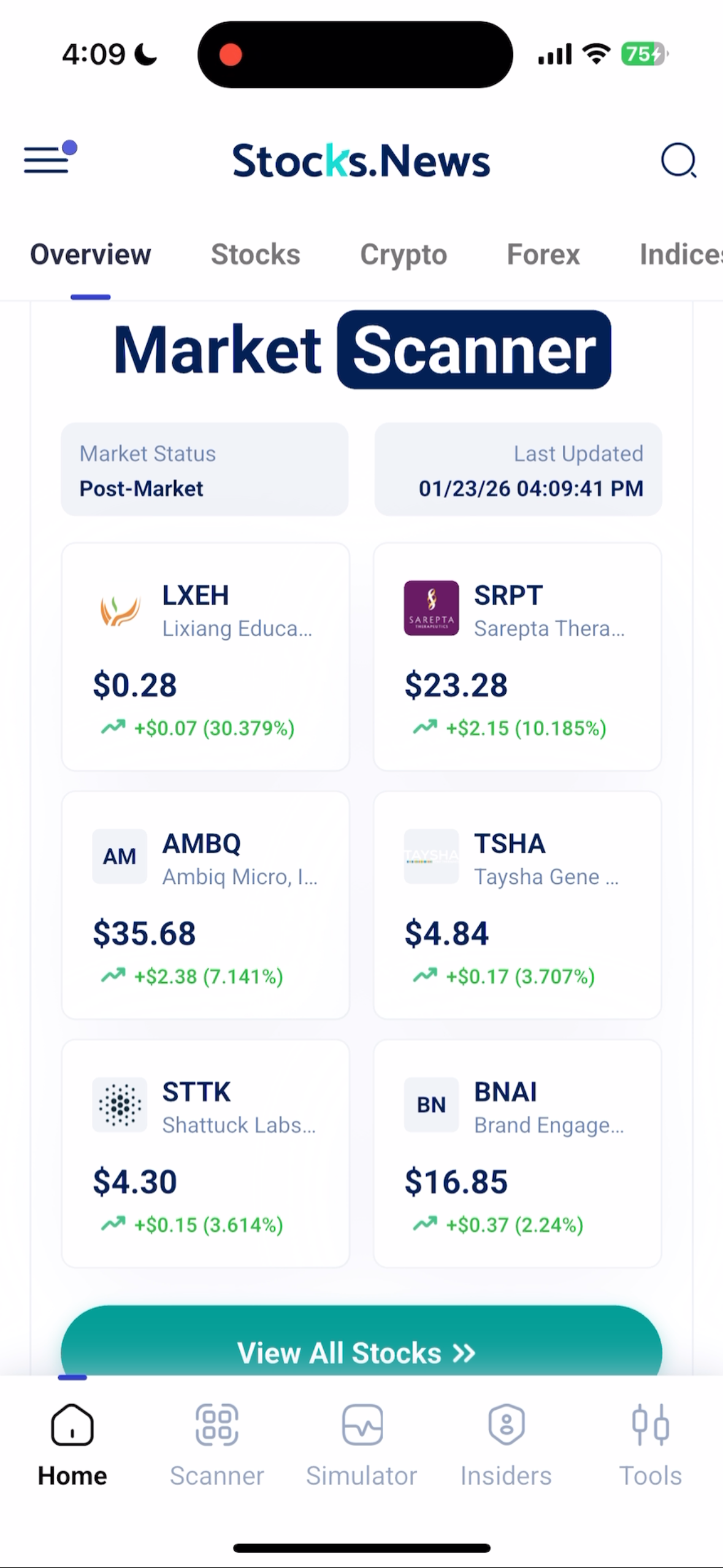 What will be the TOP STOCKS on the Stocks.News Scanner TODAY? IT'S LIVE RIGHT NOW and you could probably see some movers taking the NUMBER 1 SPOT!