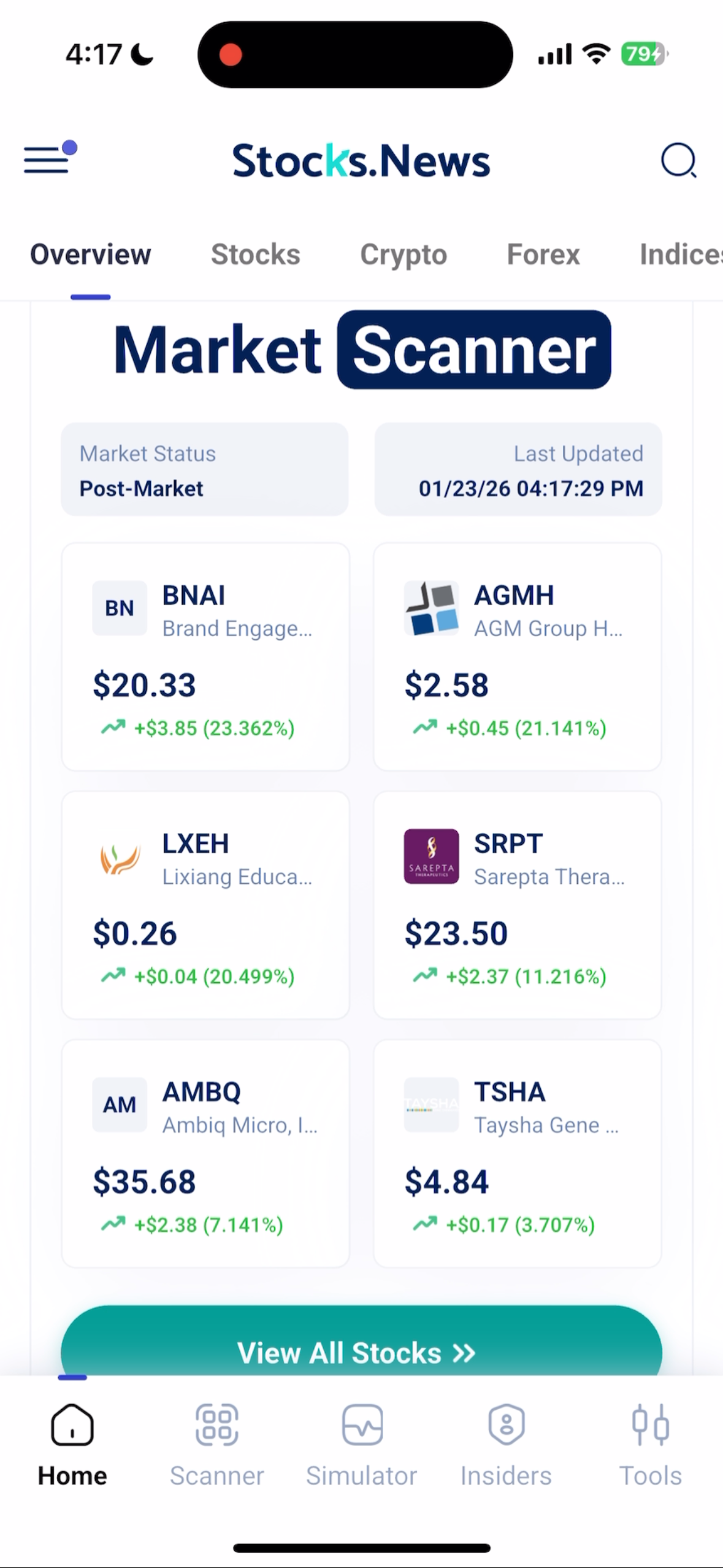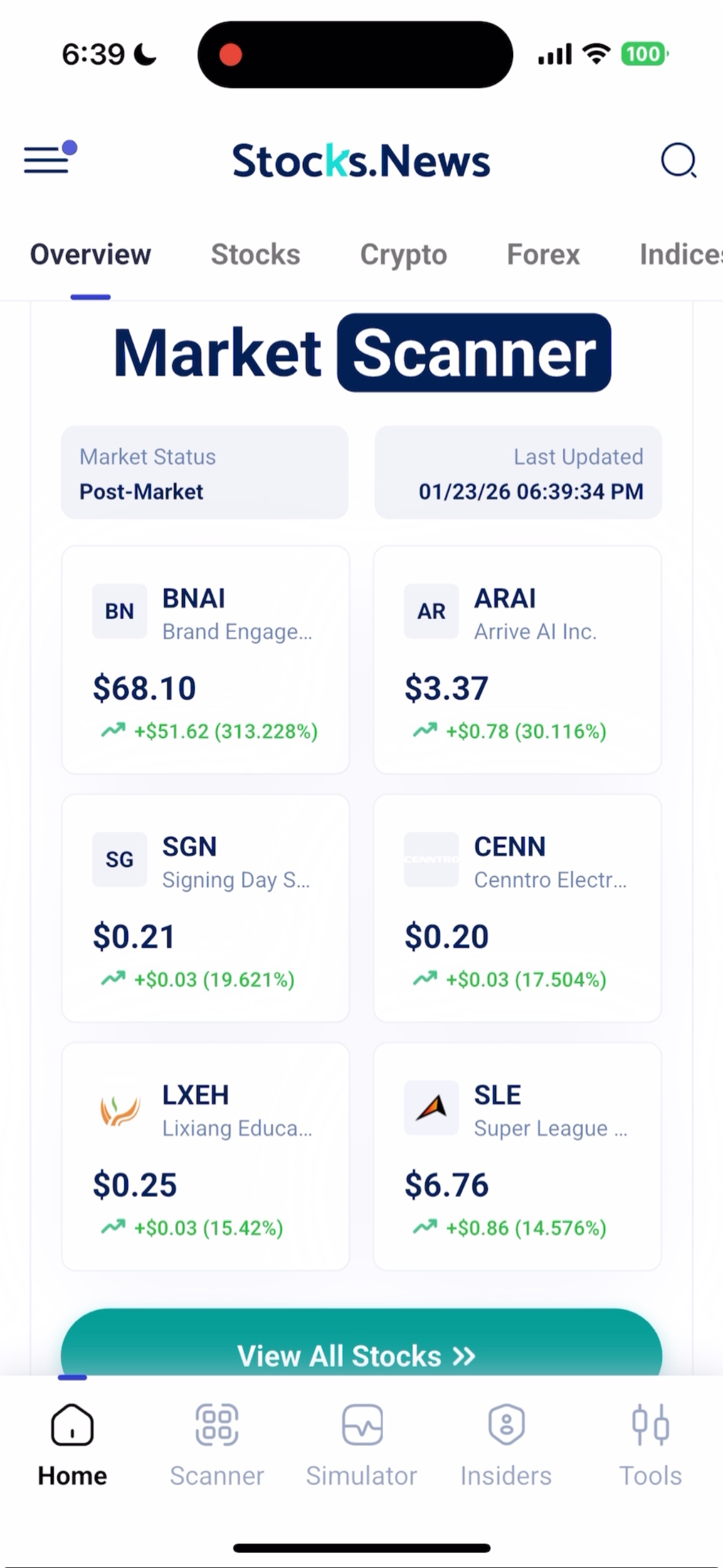 The Stocks.News Scanner on FRIDAY JANUARY 23RD SAW A 300% WINNER IN UNDER 3 HOURS! Here are actual screenshots of our scanner catching NASDAQ: BNAI going from UNDER $17 to OVER $68!