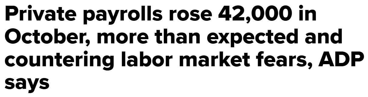 Even with the government shutdown now eligible for Social Security benefits, ADP says private employers somehow scraped together 42,000 new jobs in October… the first gain since July. It’s the kind of small victory that makes economists high-five and investors exhale… at least until they remember Michael Burry just went “Big Short” on Palantir and Nvidia.