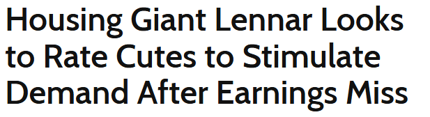 So, the question has been answered: Was Lennar, who was running a Black Friday sale on houses while mortgage rates are still sitting at levels that make potential buyers want to live in their parents' basement forever, a good strategy? Nada. This is exactly why the company's betting that Jerome Powell's rate cut magic will eventually trickle down to mortgage rates and suddenly everyone will remember they want to buy overpriced suburban McMansions again.