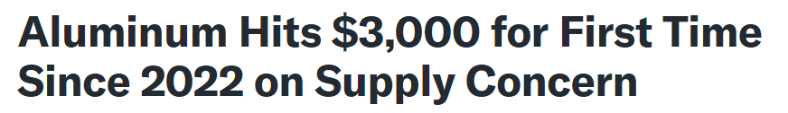 Hold onto your Bud Lights friends because your favorite metal, aluminum, just ripped through $3,000 a ton this week for the first time since 2022. Translation: Something is definitely breaking behind the scenes and nobody wants to admit it yet.