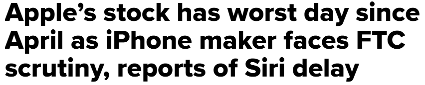 Of course, Apple’s been here before. They've survived worse. But this particular clusterf*ck cocktail of delayed product launches, FTC heat, sector-wide rotation out of tech… definitely isn’t something that resolves itself in a couple earnings call. This is a "wait and see if Siri's actually good when it ships" situation, and the market's not known for its patience. Meaning, Timothy Apple is going to need more than a polite email response to the FTC and a "trust us, it's coming" on Siri to turn this around. The stock needs a win, and right now, all it's got is a delay and a subpoena. Until May, I guess. Or later. Who knows anymore.