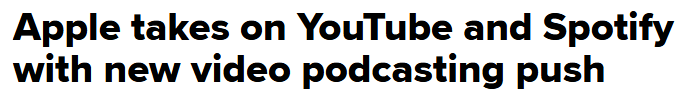 In short, Apple announced Monday it's finally bringing integrated video to Apple Podcasts this spring. Users will be able to switch between watching and listening from the same feed, download episodes offline, and use picture-in-picture mode. Which, spoiler… is the stuff Spotify and Youtube have had for years.
