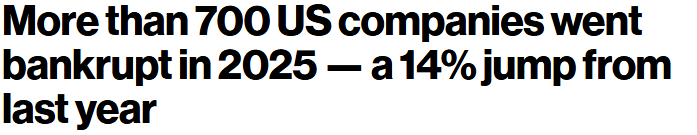 So yeah, for 2025 the new record reads 717 bankruptcies. And the scary part is that this wave wasn’t induced by a recession… instead it was from normalization. Rates back to reality. Credit with consequences. Consumers acting broke because, shockingly, many of them are. If this is what “soft landing” looks like, a lot more companies are about to find out how hard the ground actually is. Until next time, friends…
