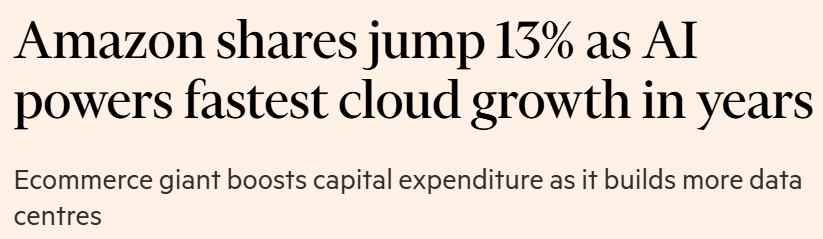 Then came the finance team to ice the cake. Amazon’s CFO announced they’re pumping 2025 capital spending to $125 billion (up from $118B)... and flippantly tossed in that 2026 will be even higher. For context, that’s more than Meta, Google, and Microsoft combined are throwing at AI infrastructure as if to say to every other Mag 7, “you’re not that guy pal.”