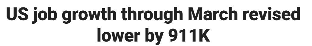 If you’re ever feeling down, just remember… you aren’t a bean counter at the BLS. In short, the Bureau of Labor Statistics’ new “benchmark revision,” quietly admitted yesterday that the U.S. economy created way fewer jobs from April 2024 to March 2025 than originally reported. Monthly gains weren’t 147k. They were 71k. Half. Gone.