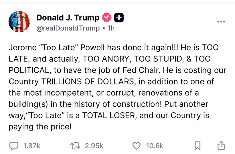 Powell is done in 2026, but Trump wants to announce his replacement “early next year,” which is plenty of time for the 10-year yield to have a full mental breakdown.