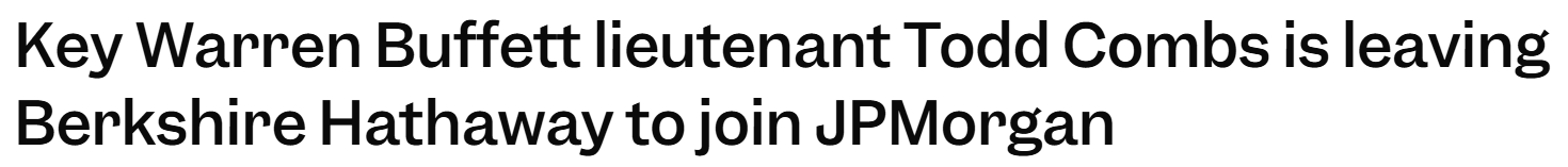 So what the heck happened? Right as Buffett is prepping to hand the CEO crown to Greg Abel (26 days, but who’s counting), Berkshire dropped a Monday surprise: Todd Combs (investment manager, Geico CEO, and one of the only humans on Earth who can say “I picked stocks for Warren Buffett” without lying) is packing his bags and heading to JPMorgan.
