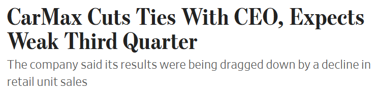 I never thought I’d see the day that CarMax, the nation’s largest used-car retailer, would be getting smoked like a Texas brisket by a car vending machine… but that’s the sad reality for Mr. Carfox. The stock is getting sold for scraps (-20%) after Bill Nash, a man who’s been at the company for 30 years and CEO since 2016, decided to step out of the kitchen midfire.