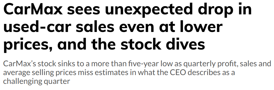 CarMax just got yeeted into the junkyard after dropping a Q2 earnings report that looked like it was written on the back of a repair estimate. Shares tanked more than 20% after the used car retailer missed both top and bottom lines, turning in an EPS of 99 cents vs. the $1.05 Wall Street was hoping for, and revenue of $6.6B compared to the $7.02B consensus. Say it with me now: damn that’s bad.