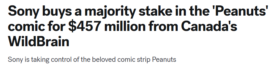 As if the holiday headline drops weren’t already crazy enough… Sony decided to pay the “please stop calling other bidders” fee and dropped $450M to double its stake in Peanuts to a whopping 80%. The remaining 20% stays with the Charles M. Schulz family… which, frankly, sounds like an elite way to spend the rest of your life. Imagine being born into a trust fund fueled entirely by Charlie Brown’s seasonal suffering.