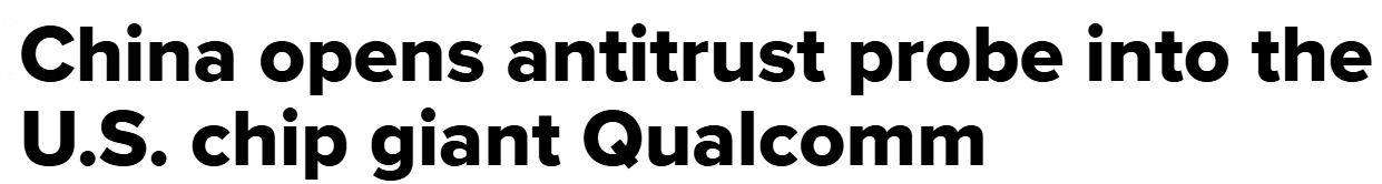 China’s State Administration for Market Regulation (a.k.a. the bureaucratic version of a final boss) announced it’s investigating Qualcomm for anti-monopoly violations tied to its recent Autotalks acquisition… an Israeli auto-chip maker that helps cars talk to each other.
