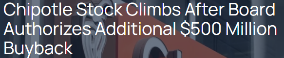 Chipotle just did what every overleveraged executive dreams of after a bad quarter: throw a fat buyback at the problem and hope Wall Street forgets about the dumpster fire in the kitchen. The board authorized another $500M in stock buybacks, tripling its current program to $750M. Translation: burritos are selling slower, but EPS math is about to look extra zesty.