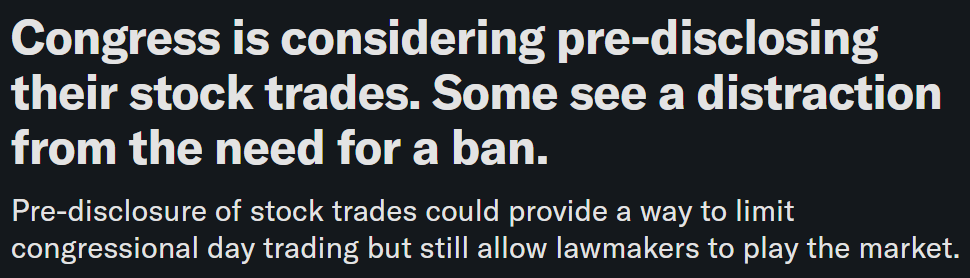 Emma Lydon of the Progressive Change Campaign Committee, pretty much called BS right away. Her point: yeah, pre-disclosure might curb a tiny sliver of insider trading… but it does nothing to stop the bigger issue… lawmakers trading stocks in companies they literally oversee.