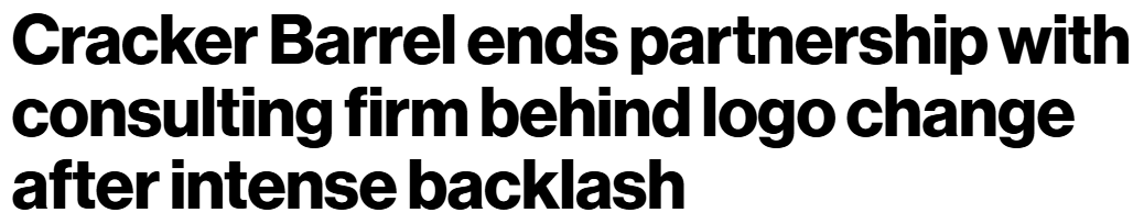 Even Donnie Politics weighed in, saying Cracker Barrel should “go back to the old logo, admit a mistake, and have a press conference.” Which, in true Cracker Barrel fashion, they did… minus the free cornbread. Well, seven months after hiring Prophet to “reimagine” the brand, Cracker Barrel has announced that the partnership is over.