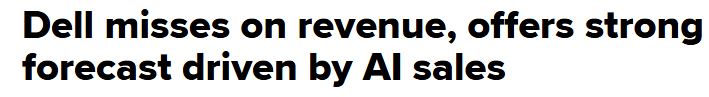 Dell had one job this quarter: don’t embarrass yourself. They sort of succeeded. Sure, revenue missed by a hair, but the real story is that Dell basically walked onto the earnings call holding a giant sign that said “AI saved our ass again.” And Wall Street, in its eternal quest to pretend it’s surprised by anything anymore, rewarded them for it.