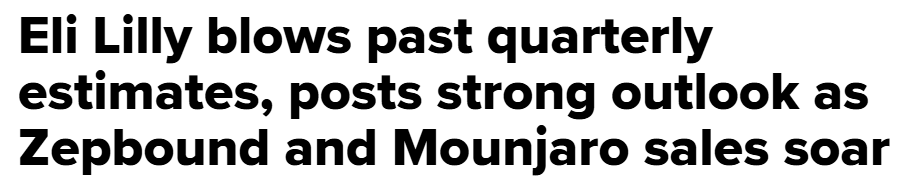 Now of course, this is the same GLP-1 street fight we’ve been watching all year… except now the contrast couldn’t be louder. Novo is talking about pressure, pricing headwinds, and declining growth. Lilly is talking about volume, dominance, and shipping units like Costco rotisserie chickens. Case in point: Mounjaro and Zepbound are the main characters here. Mounjaro pulled $7.4B in quarterly revenue, up 110% YoY. Zepbound clocked $4.2B in U.S. sales, up 122%. Bigly.