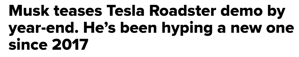 Now if you can’t tell, this is precisely what happens when Tesla runs out of earnings catalysts: Musk invents one. Case in point: The man who walked so a government shutdown could run said the new Roadster will make “all the James Bond cars combined look boring.” Which, to anyone who’s watched this movie before, means he has about three renderings and a half-charged laptop. The current record for Roadster delays sits at seven and a half years… roughly the same amount of time it takes for one of his timelines to become a meme.
