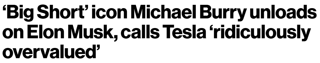 According to Burry, Tesla is “ridiculously overvalued” and has been “for a good long time.” (Tell us something we don’t already know Mike.) He then went on to paint Tesla as a mythic giant whose legs are made of shareholder dilution. Between Elon’s ever-expanding stock-based comp and the way Tesla routinely hands out shares like company-branded keychains, Burry thinks shareholders are getting carved up one sliver at a time.