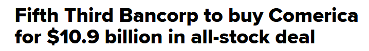 The Cincinnati lender just agreed to buy Comerica in an all-stock deal worth $10.9 billion… which, if you’re keeping score, makes it the ninth-largest U.S. bank with $288 billion in assets. Translation: another regional player just swallowed a slightly smaller regional player to prove it’s “built for scale” in a world where only the top five banks actually matter.