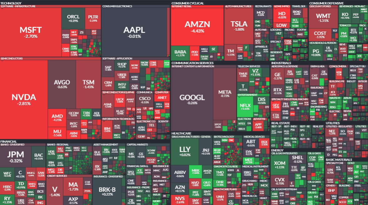 As for the damages, the Dow dropped 328 points (-0.7%), the S&P 500 slid 0.4%, and the Nasdaq dipped 0.6%… all while pretending this wasn’t its fourth straight losing session. (Spoiler: it was. That’s the longest slide since August, friends.)