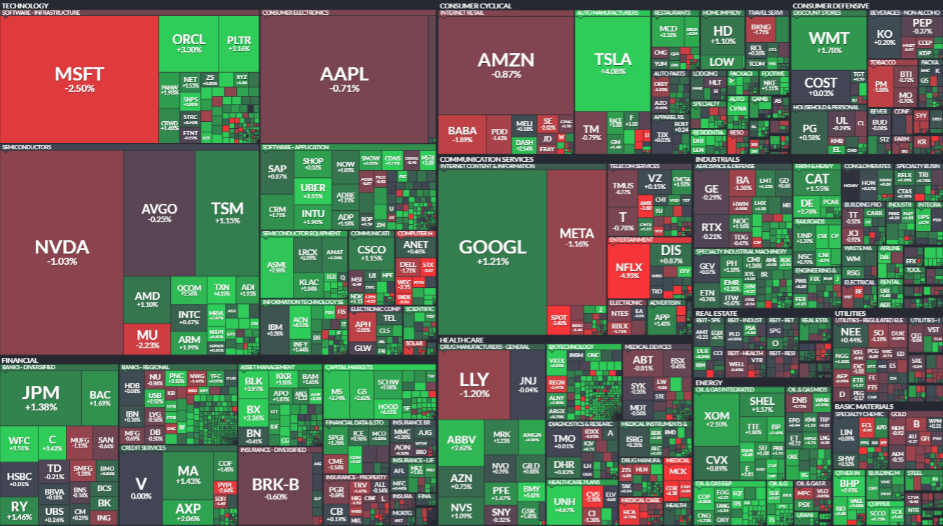 Tech didn’t exactly impress today, largely because Microsoft (-1%) stepped into another PR pothole. The Information reported they were trimming AI-related sales quotas.
