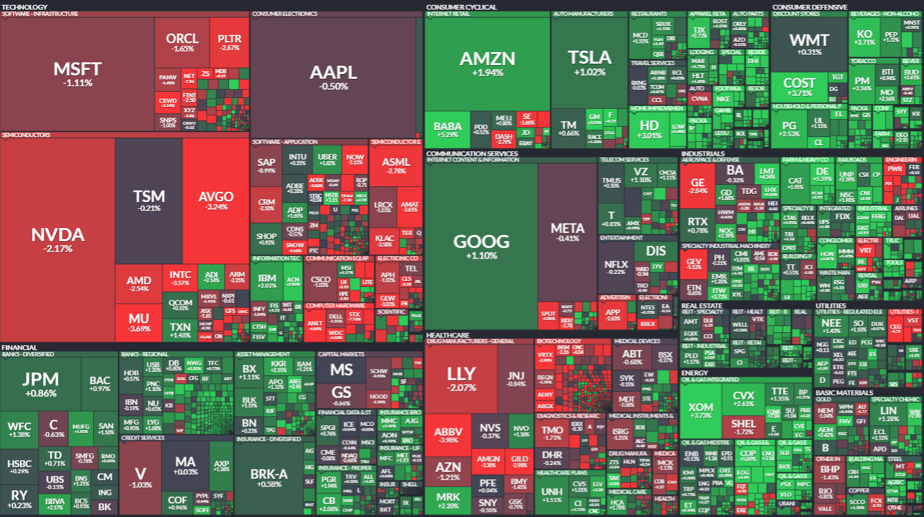 Information technology was the only S&P sector with real losses, down roughly 2%, as if investors said “we’ve heard enough about AI for one week… take a seat.”