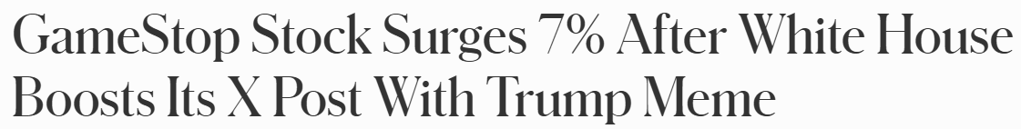 Well, unless your portfolio includes meme stocks or energy swords, not much… except maybe proof that the White House’s social-media interns are terminally online. But for GameStop, any excuse to ride the nostalgia wave of Halo and meme energy from 2021’s Reddit army is good for business.