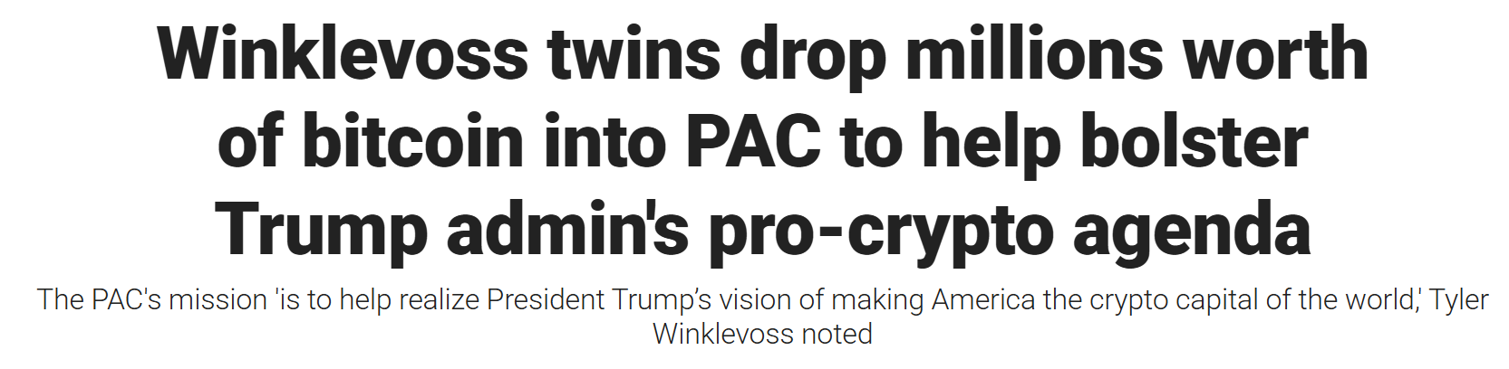And the timing is almost too perfect. Daddy Trump is back in the White House, chucking pro-crypto policies around like T-shirts at an NBA game. The twins even slid $21 million worth of Bitcoin into a Republican PAC to help grease the wheels of Trump’s “digital assets are the future” agenda. Politics, baby.