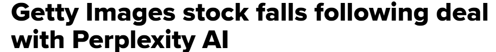 But then… reality set in. Investors seemed to end up experiencing a wild case of post-nut clarity as Getty gave it all back and closed down nearly 7%. Meaning, this was one of those rare moments when a stock chart actually captures the full emotional range of the internet: excitement, confusion, collapse. So what exactly happened? In short, Perplexity gets access to Getty’s massive library of creative and editorial imagery. In return, it agrees to do the bare minimum… credit the source, add links, and pretend to care about copyright. The press release called it “a step toward responsible AI integration.” What it really is, is a truce between the thieves and the robbed.