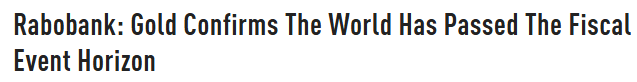 Rabobank calls it the “fiscal event horizon”... the point where governments stop pretending they’ll ever pay anything back and just inflate their way into the abyss. Translation: every major economy is trying to fix a debt problem by printing money, and gold is the only thing that doesn’t have a central banker attached to it. Which means, the ones driving this meltup are the one’s who actually run the world’s balance sheets. Central banks… especially in emerging markets…are hoarding bullion like it’s toilet paper in 2020. China’s quietly swapped U.S. Treasuries for gold bars. Russia’s been stacking since the sanctions hit. Even Brazil’s in on it.