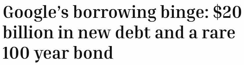 If it happens, Alphabet Inc. would become the first major tech company to issue century-long debt since the dot-com era… back when Friends dominated TV ratings and investors sincerely believed “page views” were a business model (spoiler: they were not). The last tech company that tried something like this was Motorola in 1997, which, to put it gently, did not spend the next hundred years ruling the global economy.