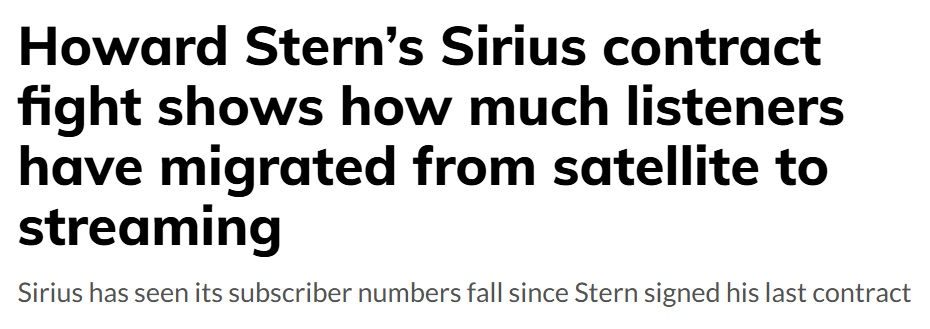 The man has a point. When Stern jumped ship from terrestrial radio in 2006, Sirius was crawling along with 3.3 million subs while XM had 6 million. His move not only shifted the balance of power, it forced the merger that created today’s media powerhouse. Nearly two decades later, he’s still the main character. On the flipside, the scary part is that he’s still the only main character.