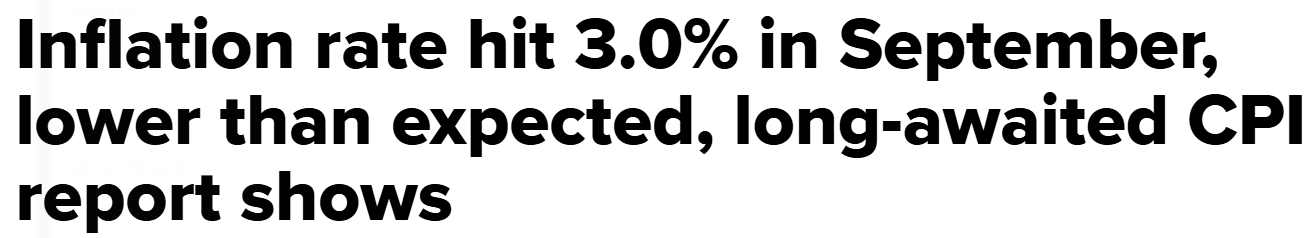 The long-awaited September CPI report (literally the only economic data Washington’s allowed to publish right now) showed consumer prices rising just 0.3% on the month and 3.0% year-over-year. Both were softer than Wall Street expected.