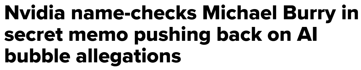 Nvidia just pulled a full Eminem diss track on Michael Burry (Mr. “Nvidia = Cisco 2.0”) by quietly slipping a seven-page, back-alley dossier to Wall Street analysts refuting everything he’s been yapping about on Twitter.