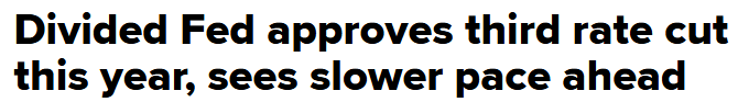 With that said, the real story wasn’t necessarily the cut, it was the Roy-type family drama behind it. In short, the Fed hasn’t thrown three “no” votes at a meeting in over a decade, and suddenly we’re out here recreating 2014 like it’s a nostalgia act. Hawks mad. Doves mad. Everyone tired. Even J-Poww looked like he wanted to wrap things up and get to the part of his life where he cashes a Goldman signing bonus and ghosts the group chat.