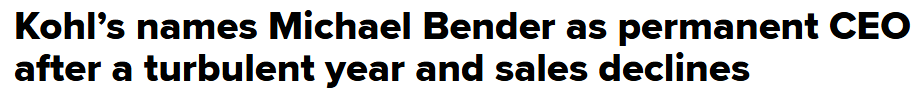After three consecutive years of clusterf*k leadership, Kohls has finally found their man in Michael Bender. The bar is on the floor, Michael.