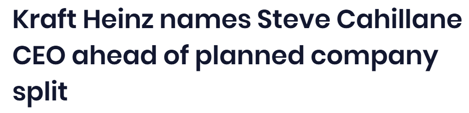 Probably just a coincidence that Kraft Heinz suddenly found religion in “experienced breakup guys” right as it prepares to smash itself into two publicly traded pieces…