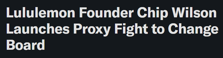 Early this morning Wilson announced he’s launching a full-blown proxy fight to shake up Lululemon’s board, nominating three new directors in what amounts to a corporate version of “I’m not mad, I’m just deeply disappointed.” And no… he’s not trying to put himself back in the big chair, which somehow makes this even more ominous. This is less “founder comeback tour” and more “dad coming downstairs after hearing the party got out of hand.”