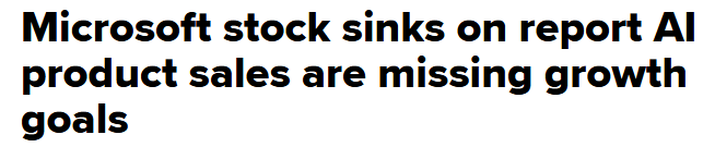 The Bing of AI products (read: Microsoft) just got an expensive reminder that enthusiasm ≠ revenue. The short version: Microsoft’s AI sales targets quietly whiffed, The Information published the receipts, and traders went full-send into “Eat sh*t” mode as shares tanked nearly 3% yesterday.