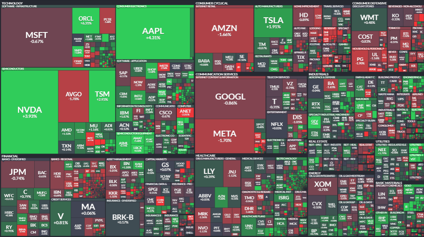 Apple (+4%) exploded on iPhone 17 demand. No matter how badly Timmie fumbles his AI dreams, the Apple faithful will still line up every fall… shelling out a grand for an extra ten minutes of battery life and a “smoother touchscreen,” whatever the heck that means.