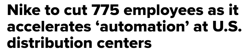 Somewhere in Oregon, a warehouse robot just got promoted… and 775 Nike employees got an email. In short, Nike decided this week was a great time to “accelerate automation” at its U.S. distribution centers… presumably with Clawdbot LOL (jk). The cuts are hitting Tennessee and Mississippi warehouses, aka the part of the company that actually touches boxes instead of Minesweeper.