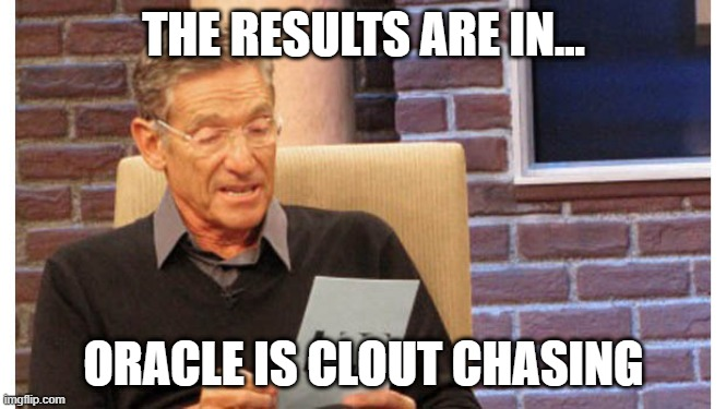 That said, the valuation is about $14 billion for TikTok U.S…. which is a number that feels low until you remember this thing spent four years being passed around like Bonnie Blue during “Petting Zoo”. Now here we are. Oracle as the hall monitor of Gen Z. From a market perspective, this is sneaky bullish for $ORCL. Oracle doesn’t need TikTok to grow… it just needs the clout. Being stapled to one of the most powerful consumer algorithms on Earth buys them credibility in AI conversations they were very much losing.
