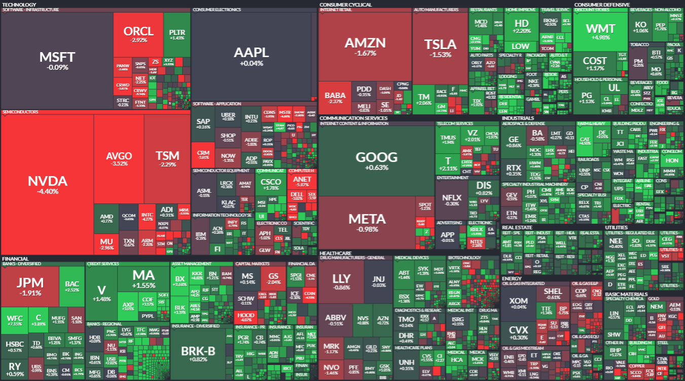 Normally this kind of news would follow with an “ATH” kinda headline… but Wall Street reacted like it just got hit with a pop quiz. The Dow tiptoed up 0.5%, the S&P 500 barely moved (+0.1%), and the Nasdaq shat the bed (-0.2%). Between the Oracle/AMD announcement and Trump and China’s “it’s complicated” trade saga, no one was exactly thrilled to keep the rally going.