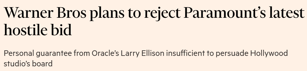 According to people who know people who know board calendars, Warner Bros Discovery is likely to tell Paramount Skydance to take its freshly polished $108.4 billion hostile bid and… politely move along. Yes, even after David Ellison’s dad (you may know him as Larry Ellison) personally guaranteed the equity like a Silicon Valley cosigner with something to prove.