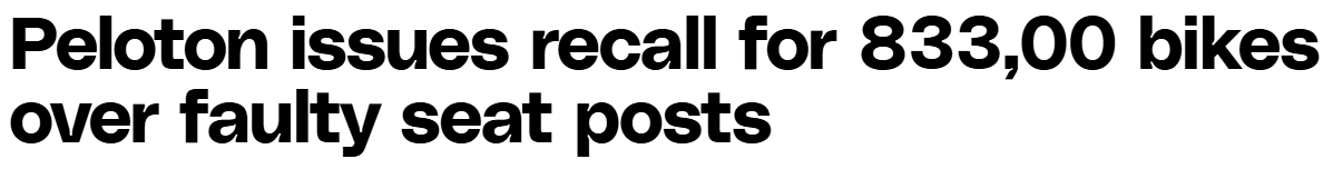 Well, Peloton has an earnings call after the market closes today, so you know what that means… time to issue another recall. (Is it just me or is the only thing getting a workout these days their legal department?)