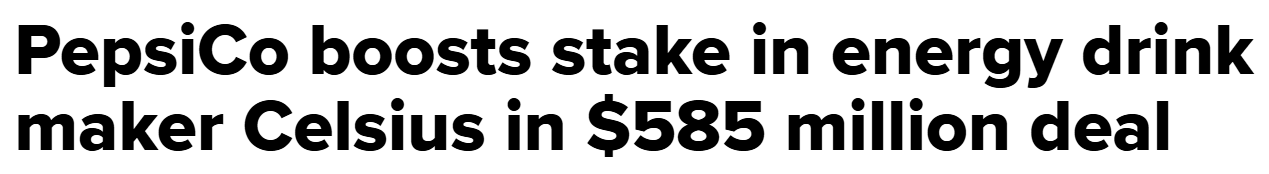 Pepsi, for what it’s worth, saw the setup coming even before Celsius pulled its Lazarus routine. Back in 2022, they quietly dropped $550 million for an 8.5% stake. At the time, it looked like a hedge… a “let’s get some exposure to this fizzy brand and see if it sticks.” And now this morning, they’ve doubled down with another $585 million, bringing their ownership up to 11%.