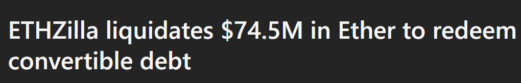 ETHZilla just disclosed it sold $74.5 million worth of Ethereum to pay down debt. Not to “optimize capital structure.” Not to “reposition liquidity.” Just straight up: we owed money, so we sold the magic internet coins.