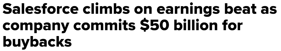And yet, it appears the market looked at the full picture and decided the beating had gone far enough. Fair. Benioff helped the case with the most Big D*ck Energy buyback announcement in recent memory: $50 billion in new repurchases. His exact words on the call, “because these are some low prices”. To which I say, respect. When you're down 28% and you back up the truck with $50B, that's a statement. The market took notes.