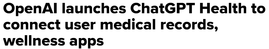 Per OpenAI, 200 million people are already asking ChatGPT health questions every week, which means humanity has collectively decided that Googling symptoms was too stressful and WebMD was actively trying to kill us. “Is this genital warts or a pimple?” is now a core AI workload. Incredible. Of course, OpenAI is covering their basis with the full no diagnoses, no treatments, no replacing doctors, and no HIPAA-safe routine. But Sam Weird Al-tman absolutely knows what he’s doing here. Health isn’t a side quest… it’s the most data-rich, emotionally charged, habit-forming category imaginable (just ask 23andMe). Meaning, if ChatGPT becomes the first place you go when something feels off (which it already is), then OpenAI just secured another moat.